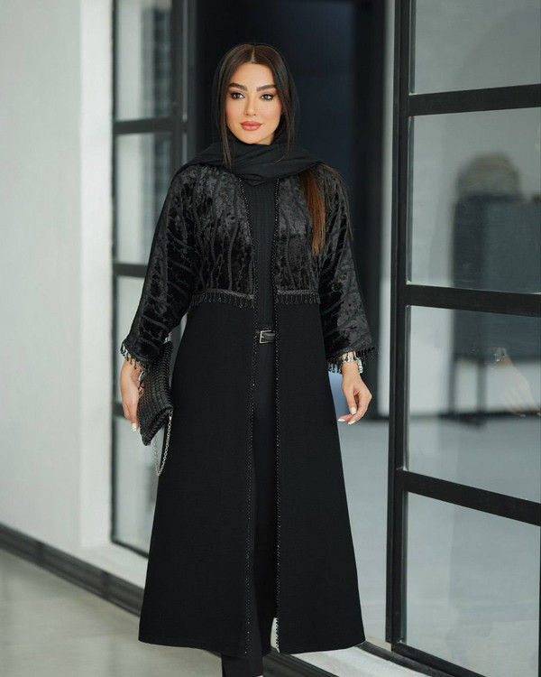🧥مدل :خرجکار مخمل ترک، سنگدوزی،نوار منگوله دار